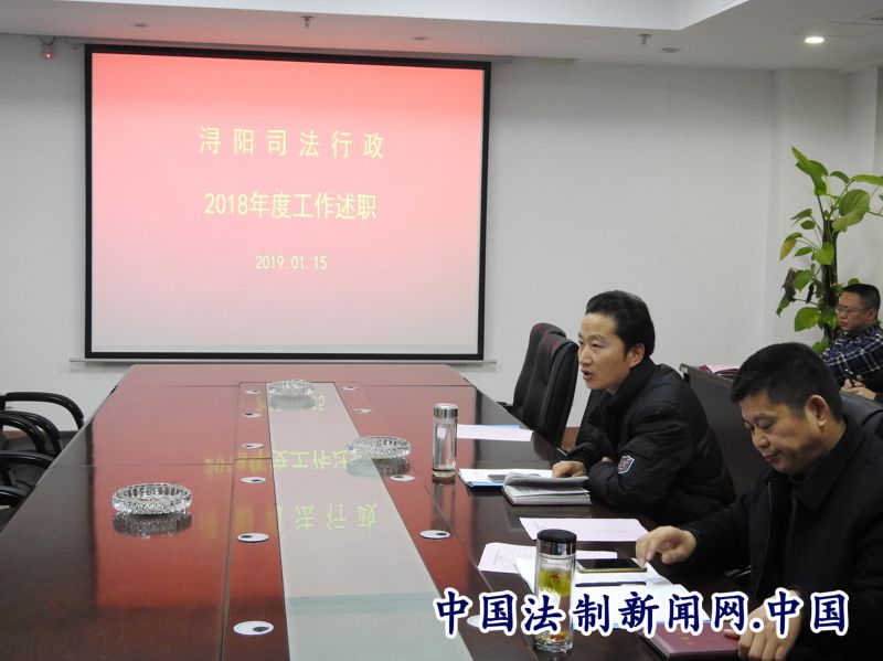 全民公众讯(谢演明)1月15日,九江市浔阳区司法局召开2018年度年终述职评议大会,局机关、司法所、公证处、律师所及法援中心20余名干部职工参加。