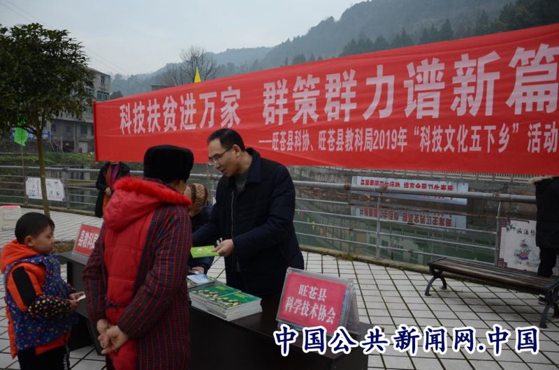 全民公众讯(杨熙坤)为进一步组织动员全县广大科技工作者积极投身决战决胜脱贫攻坚全面建成小康社会、投身于脱贫攻坚和乡村振新、建设‘一极两地四区’和‘绿谷红城•幸福旺苍’的伟大实践,旺苍县科协结合‘走基层、解难题、惠民生、办实事’活动,自1月21日开始,连续7天分别在东河镇、白水镇、龙凤镇等乡镇开展科技、文化、卫生、计生、法律‘五下乡’活动。旺苍县科协主席赵元勋参加了龙凤、五权等乡镇的活动。